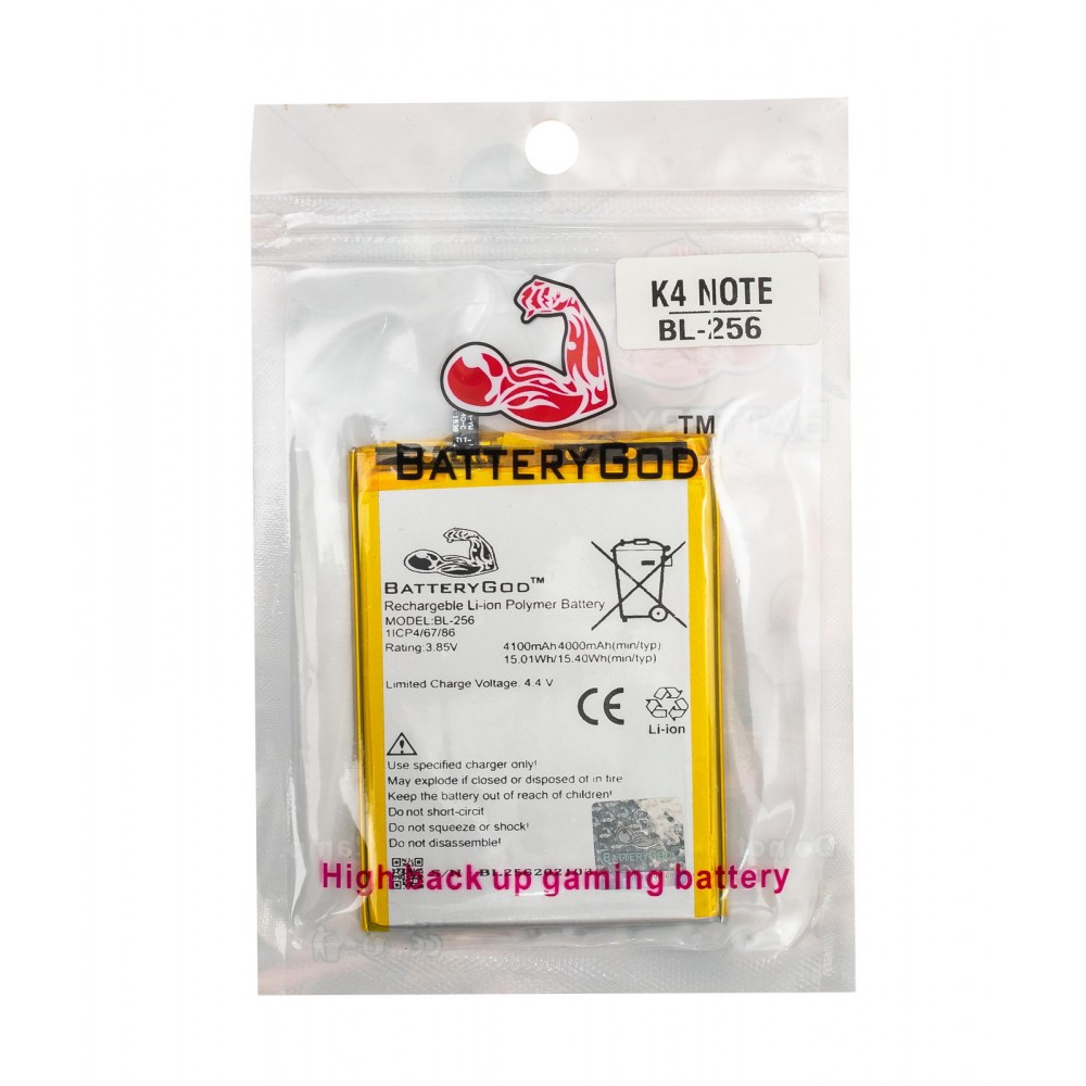 - BATTERYGOD Full Capacity Proper 4100 mAh Battery For Lenovo Vibe K4 Note / X3 Lite / A7010a40 / A7010 / K51c78 / BL256 / BL-256